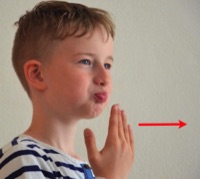 das P (Explosivlaut) auf die Innenseite der Fingerkuppen sprechen und dann die Hand schnell wegbewegen